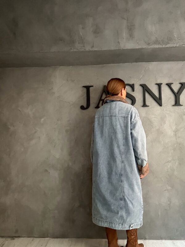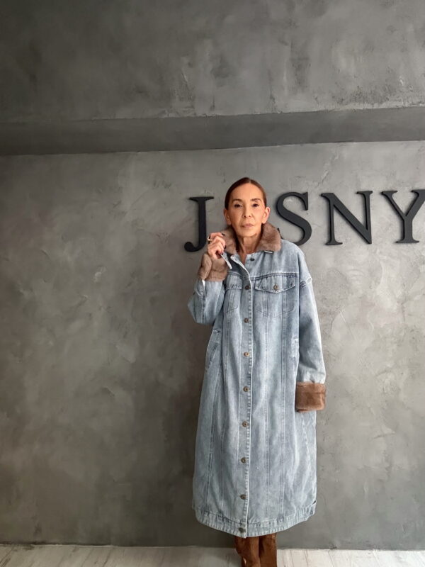 Maxi Fur Collar Τζιν Παλτό