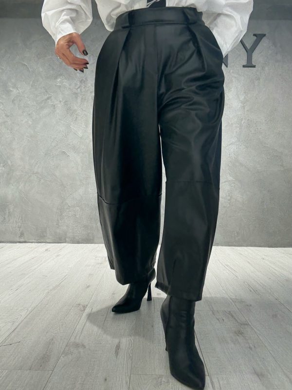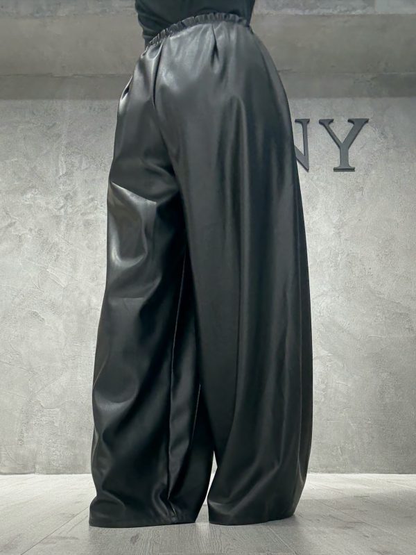 Wide-Leg Παντελόνι Δερματίνη Μαύρο