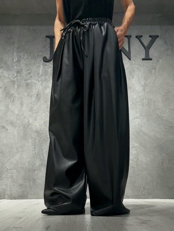 Wide-Leg Παντελόνι Δερματίνη Σπαγκί