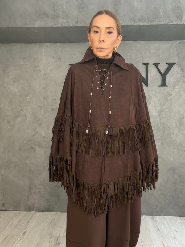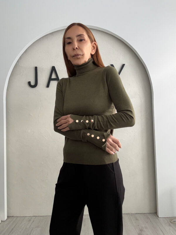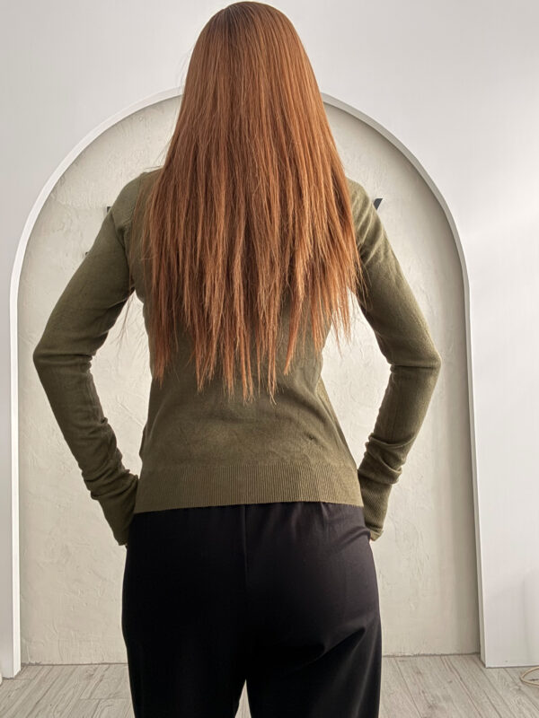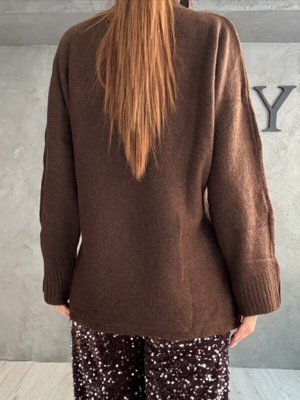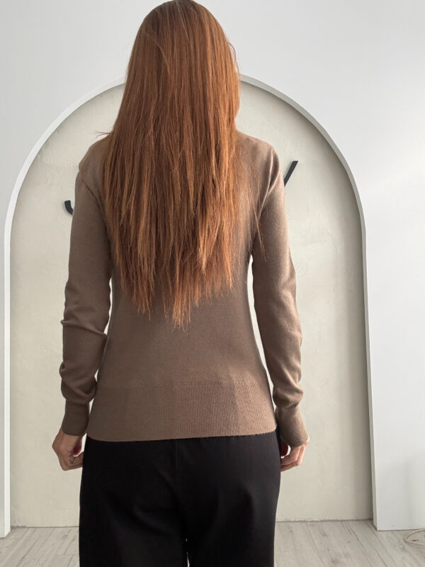Zip Neck Knit Blouse Dress Brown-Black