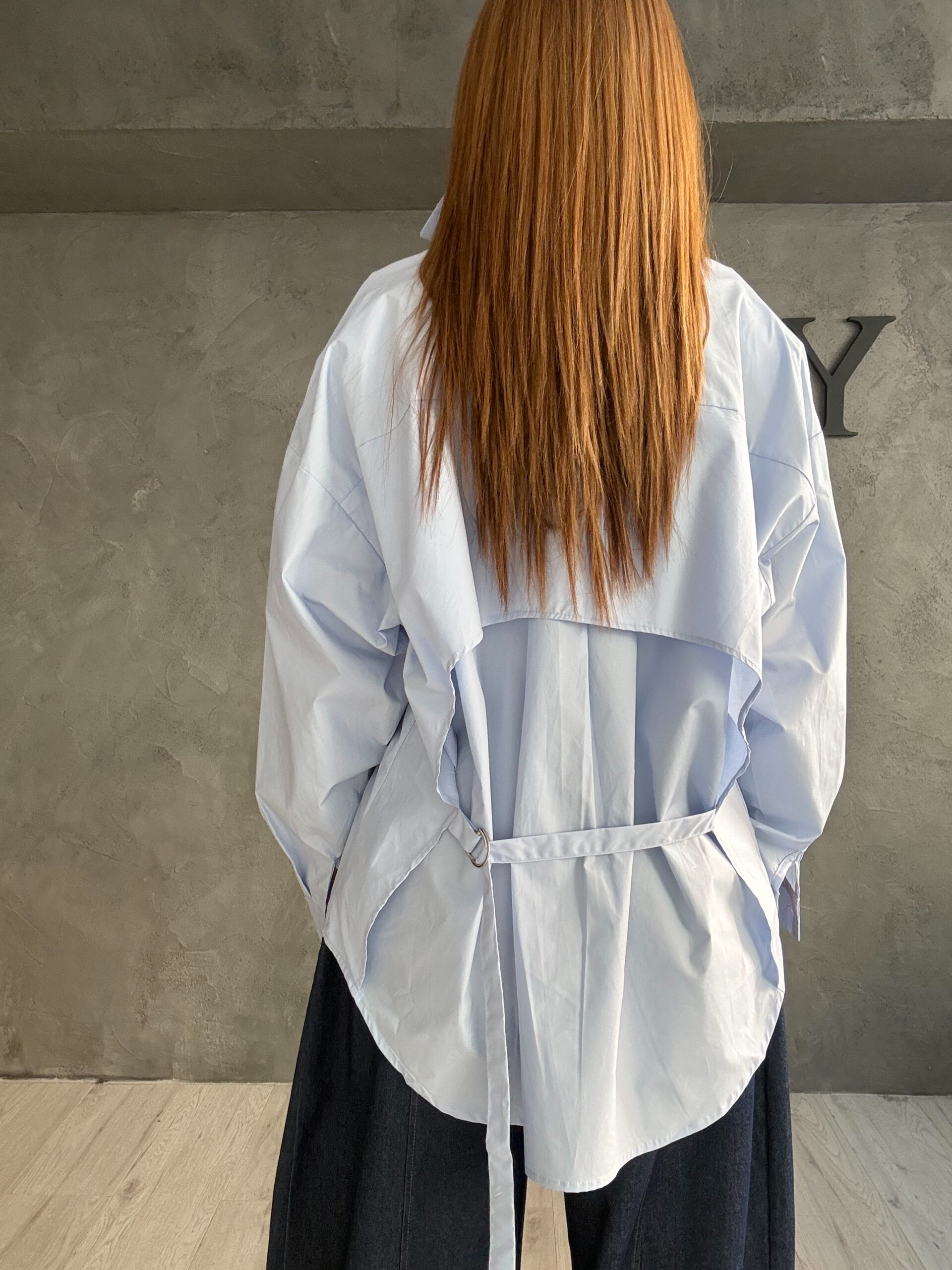 Γαλάζιο oversized πουκάμισο με αυστηρή γραμμή και ήρεμη δύναμη. Η καθαρότητα του χρώματος ισορροπεί ιδανικά με τον όγκο και τη δομημένη φόρμα, δημιουργώντας ένα κομμάτι που λειτουργεί ως βάση για σύγχρονα, αρχιτεκτονικά looks. Minimal αισθητική, χωρίς περιττές λεπτομέρειες, με έμφαση στη στάση και τη σιλουέτα.