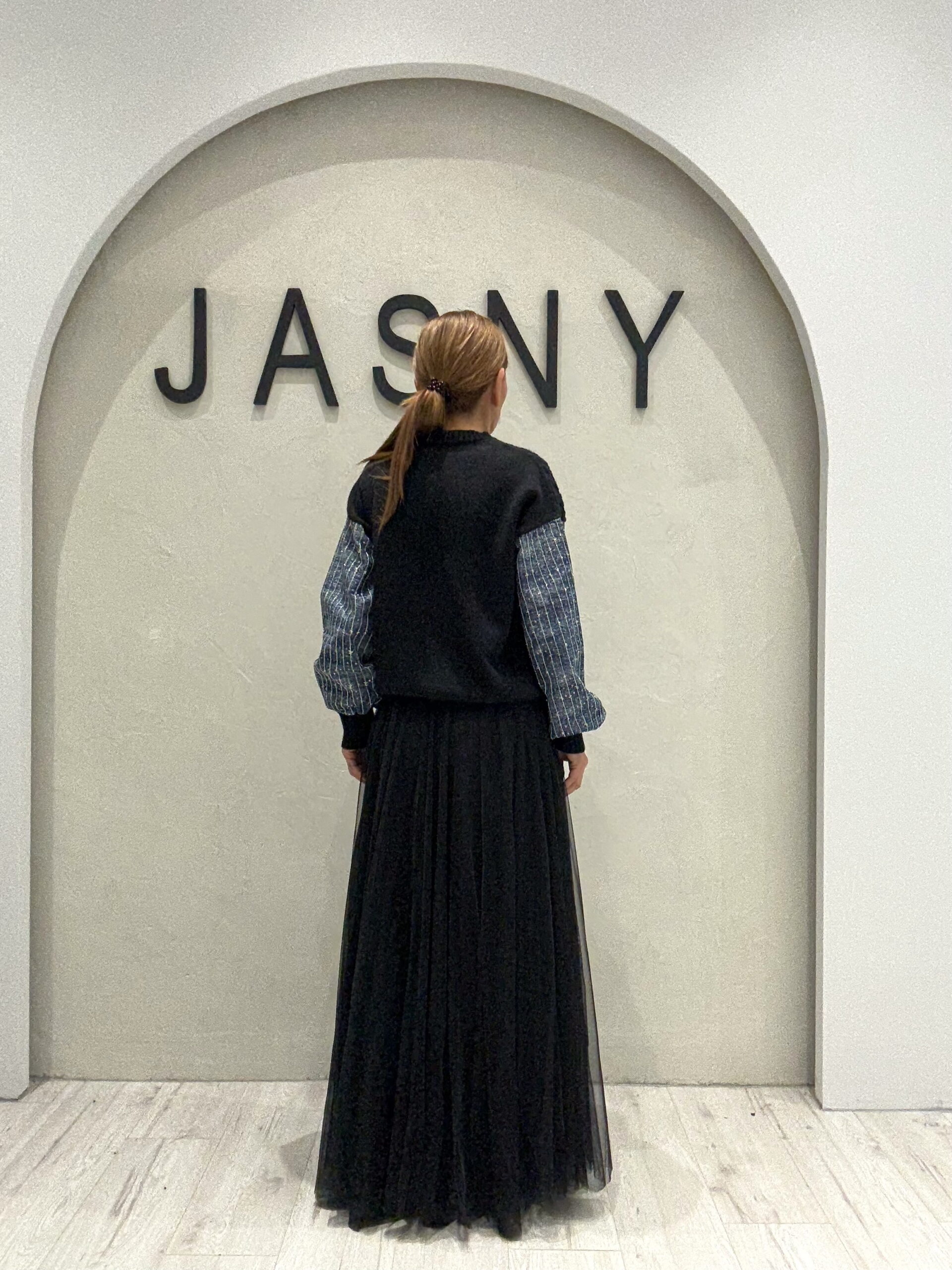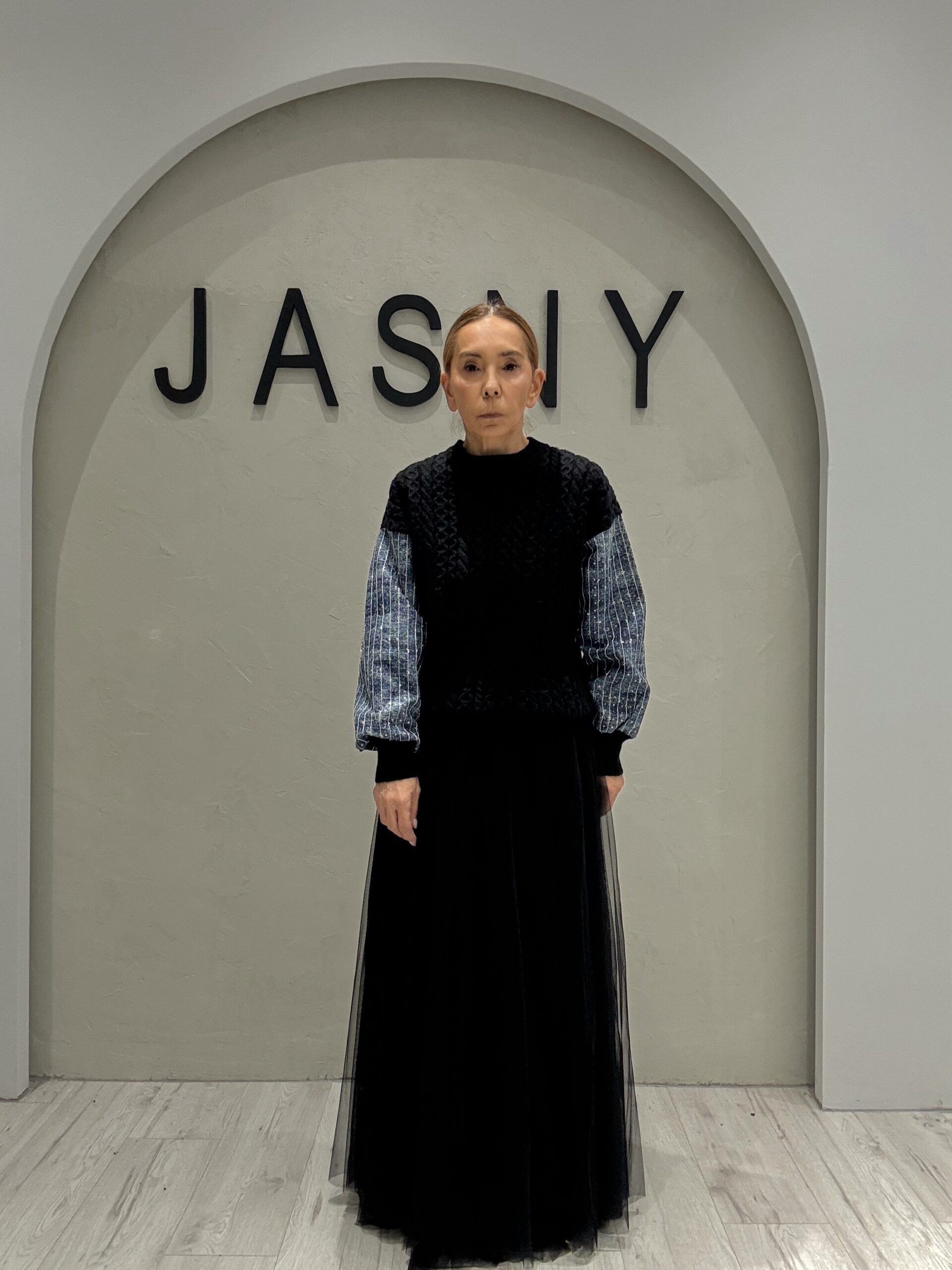 Ένα σύνολο που παίζει με την έννοια της αντίθεσης μέσα από καθαρές γραμμές και ήσυχες υφές. Το επάνω μέρος δίνει δομή και χαρακτήρα, ενώ η μακριά μαύρη φούστα χαλαρώνει τη σιλουέτα, προσφέροντας κίνηση και θηλυκότητα. Το αποτέλεσμα είναι ισορροπημένο, σύγχρονο και διαχρονικό — ένα look που δεν ακολουθεί τάσεις αλλά τις παρακάμπτει με σιγουριά.