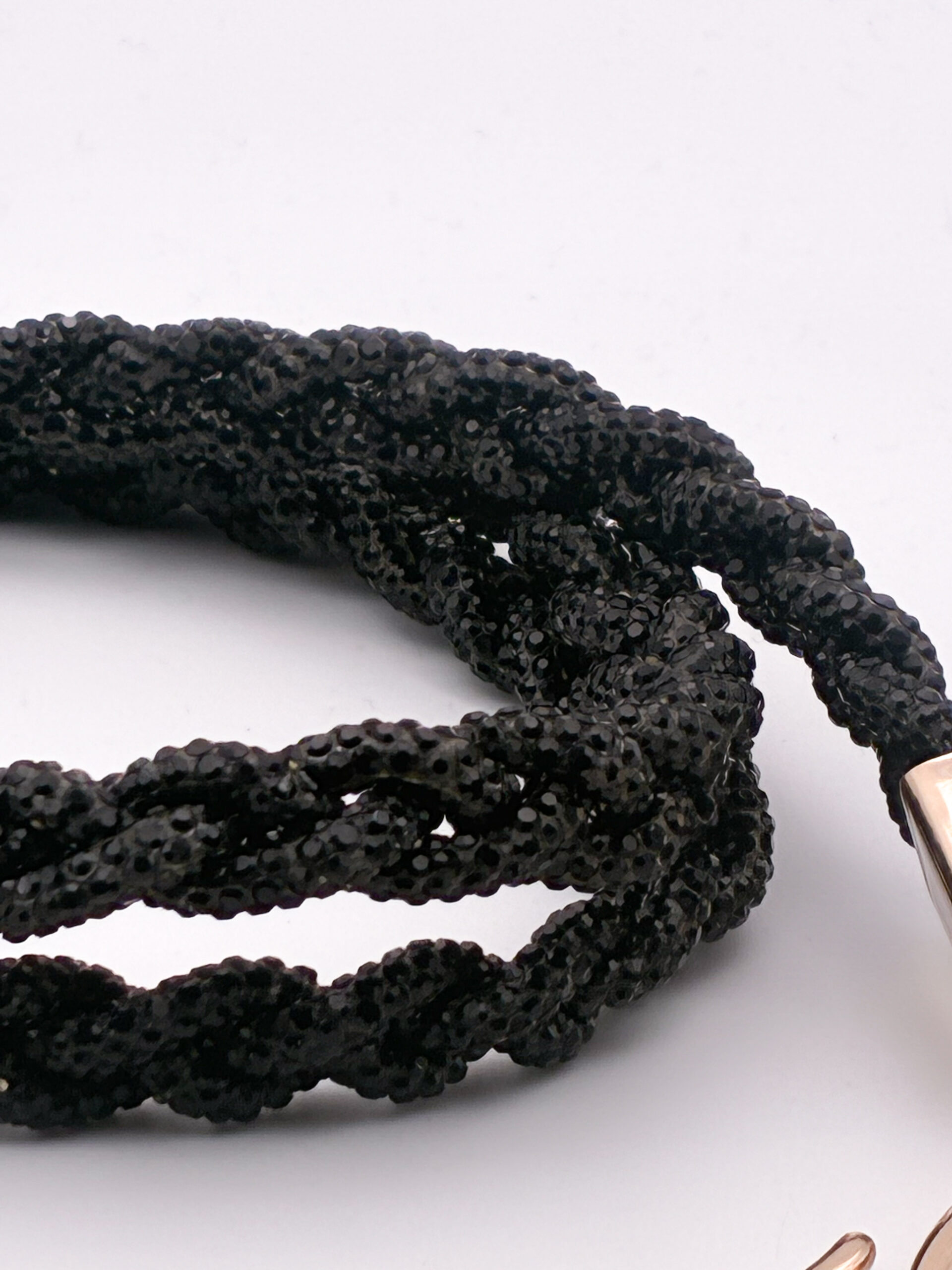 Ζώνη σε μαύρη απόχρωση με πλεγμένη υφή και χρυσές μεταλλικές λεπτομέρειες, που συνδυάζει τη δυναμική αισθητική με τη διακριτική πολυτέλεια. Η υφή της προσθέτει βάθος στο look, ενώ η αλυσίδα και το μεταλλικό κούμπωμα δίνουν ένα κομψό, σύγχρονο χαρακτήρα. Ένα αξεσουάρ που λειτουργεί ως statement χωρίς υπερβολή, ιδανικό για να ολοκληρώσει minimal αλλά και πιο δομημένα σύνολα.