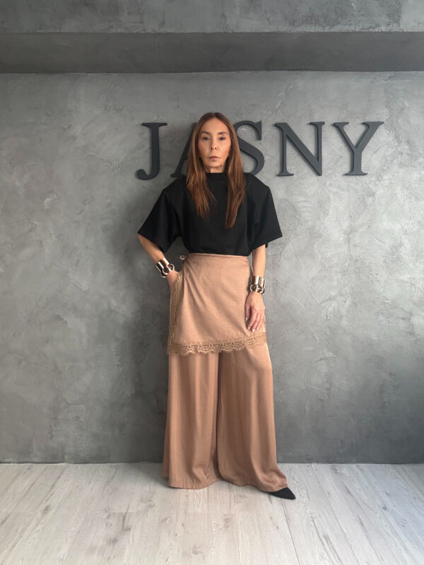 Η αντίθεση εκρού και μαύρου δημιουργεί ένα διαχρονικό και δυναμικό αποτέλεσμα που μπορεί να φορεθεί από το πρωί έως το βράδυ. Το layering των υφών και των γραμμών δίνει fashion χαρακτήρα χωρίς υπερβολή, ενώ το σύνολο παραμένει ευκολοφόρετο και κομψό. Ένα outfit που ξεχωρίζει με καθαρότητα και ένταση, ιδανικό για γυναίκες που αγαπούν τα ιδιαίτερα αλλά φορέσιμα looks.
