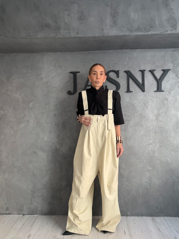 Ένα layered look με έντονη αρχιτεκτονική δομή και industrial αισθητική. Το μακρύ denim πανωφόρι λειτουργεί ως βασικό δομικό στοιχείο, δημιουργώντας καθαρές γραμμές και επιβλητική σιλουέτα. Το wide παντελόνι ενισχύει τον όγκο και τη γεωμετρία του συνόλου, ενώ το σκούρο πουκάμισο στο εσωτερικό προσθέτει βάθος και ισορροπία, χωρίς να ανταγωνίζεται το υλικό του denim. Ένα σύνολο αυστηρό, σύγχρονο και απόλυτα editorial, σχεδιασμένο για γυναίκες που επιλέγουν τη φόρμα ως τρόπο έκφρασης.