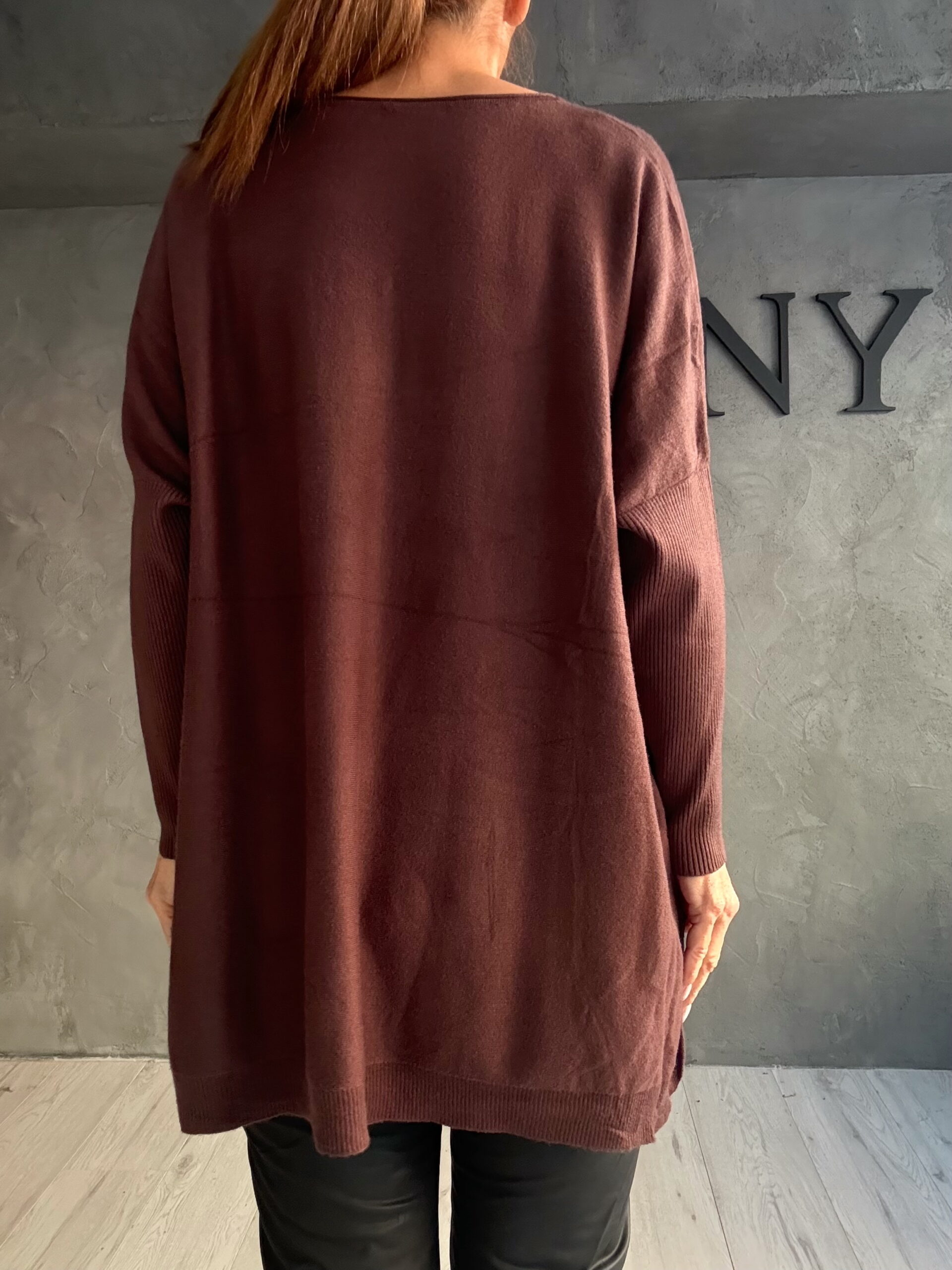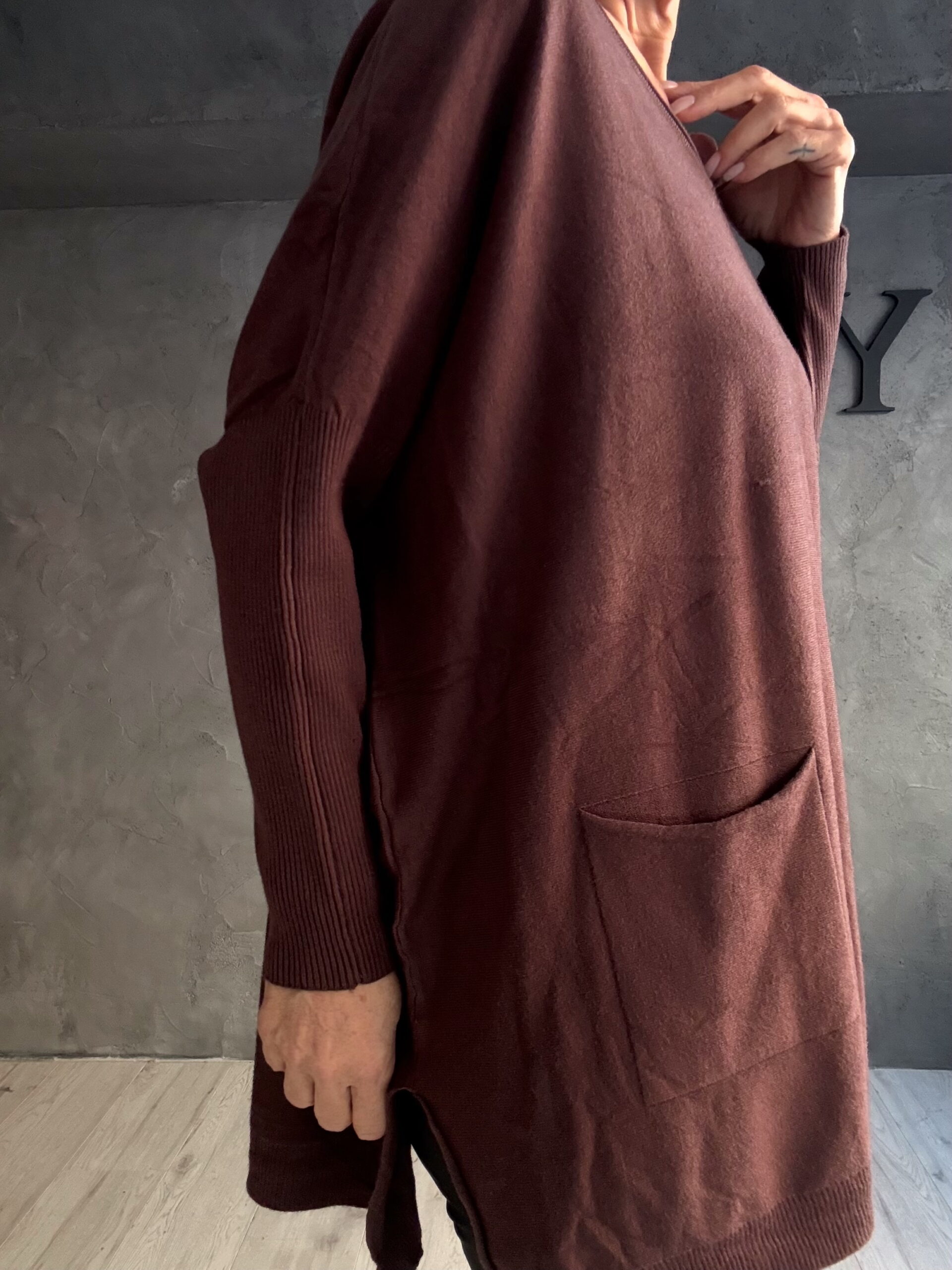 Η εφαρμογή της πέφτει φυσικά στο σώμα, προσφέροντας άνεση και κολακευτική κάλυψη. Το μήκος της την καθιστά ιδανική για συνδυασμούς με leggings ή παντελόνια, δημιουργώντας καθημερινά looks με ήσυχο, γήινο χαρακτήρα.