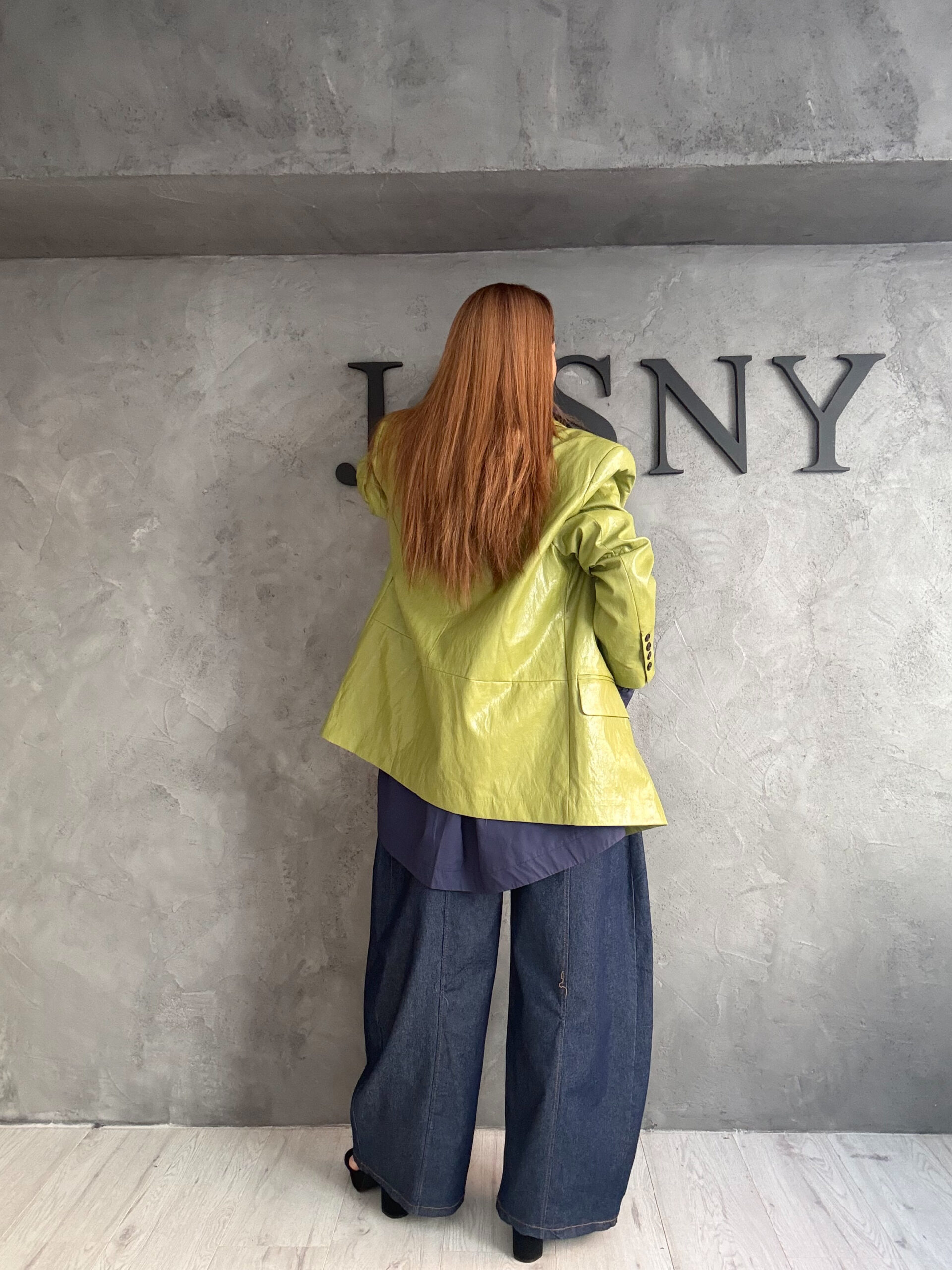 Ένα look που ισορροπεί ιδανικά ανάμεσα στη δύναμη και τη σιωπή. Το structured σακάκι σε φωτεινή πράσινη απόχρωση λειτουργεί σαν statement κομμάτι, φωτίζοντας το σύνολο χωρίς να γίνεται κραυγαλέο. Από μέσα, το σκούρο πουκάμισο «γείωνει» το αποτέλεσμα, ενώ το wide denim παντελόνι με τις καθαρές, αρχιτεκτονικές γραμμές χαρίζει όγκο και σύγχρονη αυστηρότητα. Ένα outfit με editorial χαρακτήρα, σχεδιασμένο για γυναίκες που δεν χρειάζονται υπερβολές για να ξεχωρίσουν.