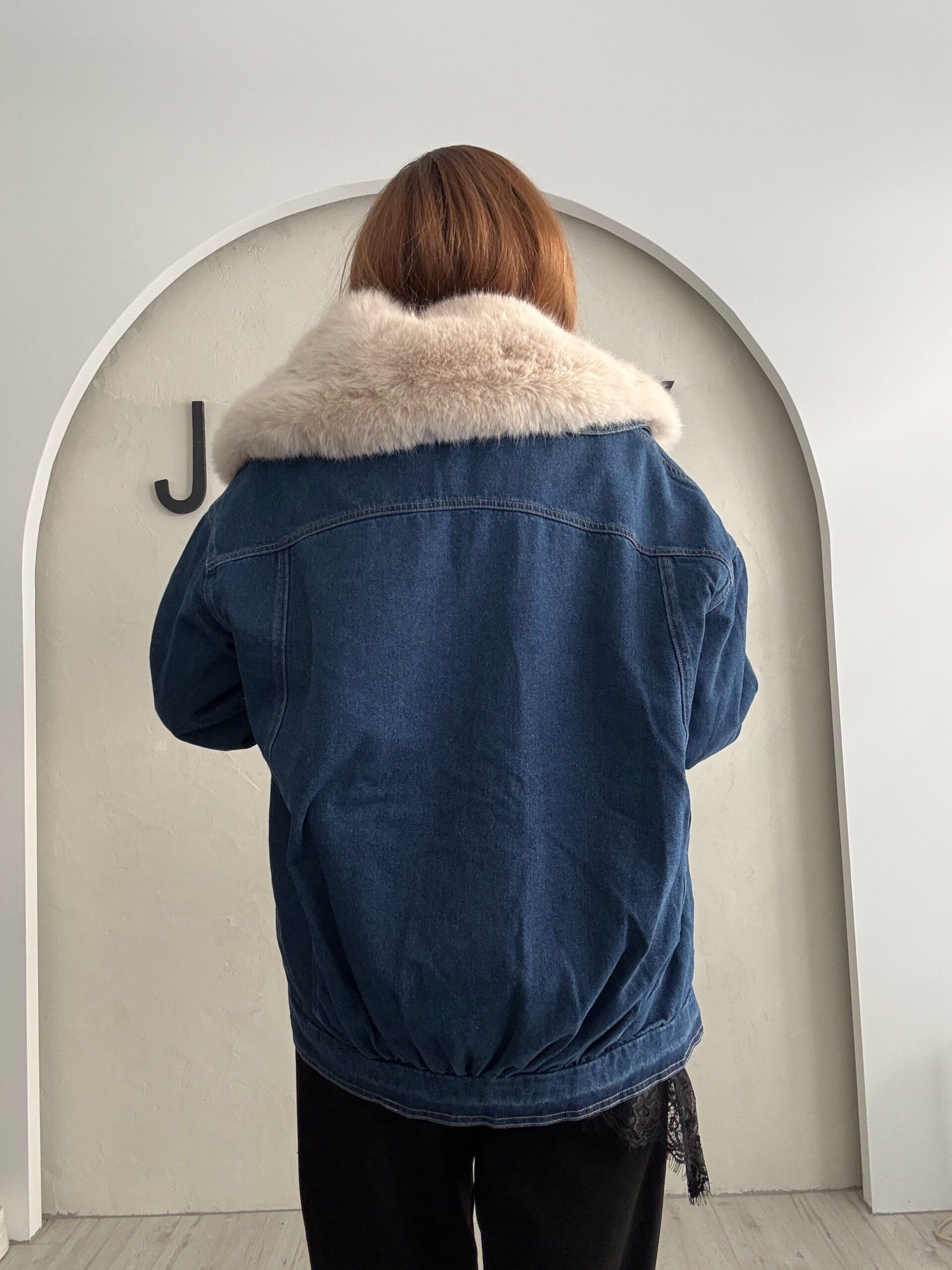 Ο συνδυασμός του κλασικού denim με τη μαλακή υφή της γούνας δημιουργεί ένα jacket που ισορροπεί ανάμεσα στο casual και το refined.