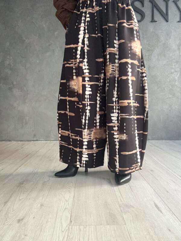 Minimal leopard set σε ζεστές καφέ αποχρώσεις, με άνετη, wide γραμμή που χαρίζει κίνηση και πολυτέλεια. Το πουκάμισο έχει χαλαρή εφαρμογή και κουμπιά, ενώ το παντελόνι πέφτει κάθετα, δημιουργώντας μια καθαρή σιλουέτα.
