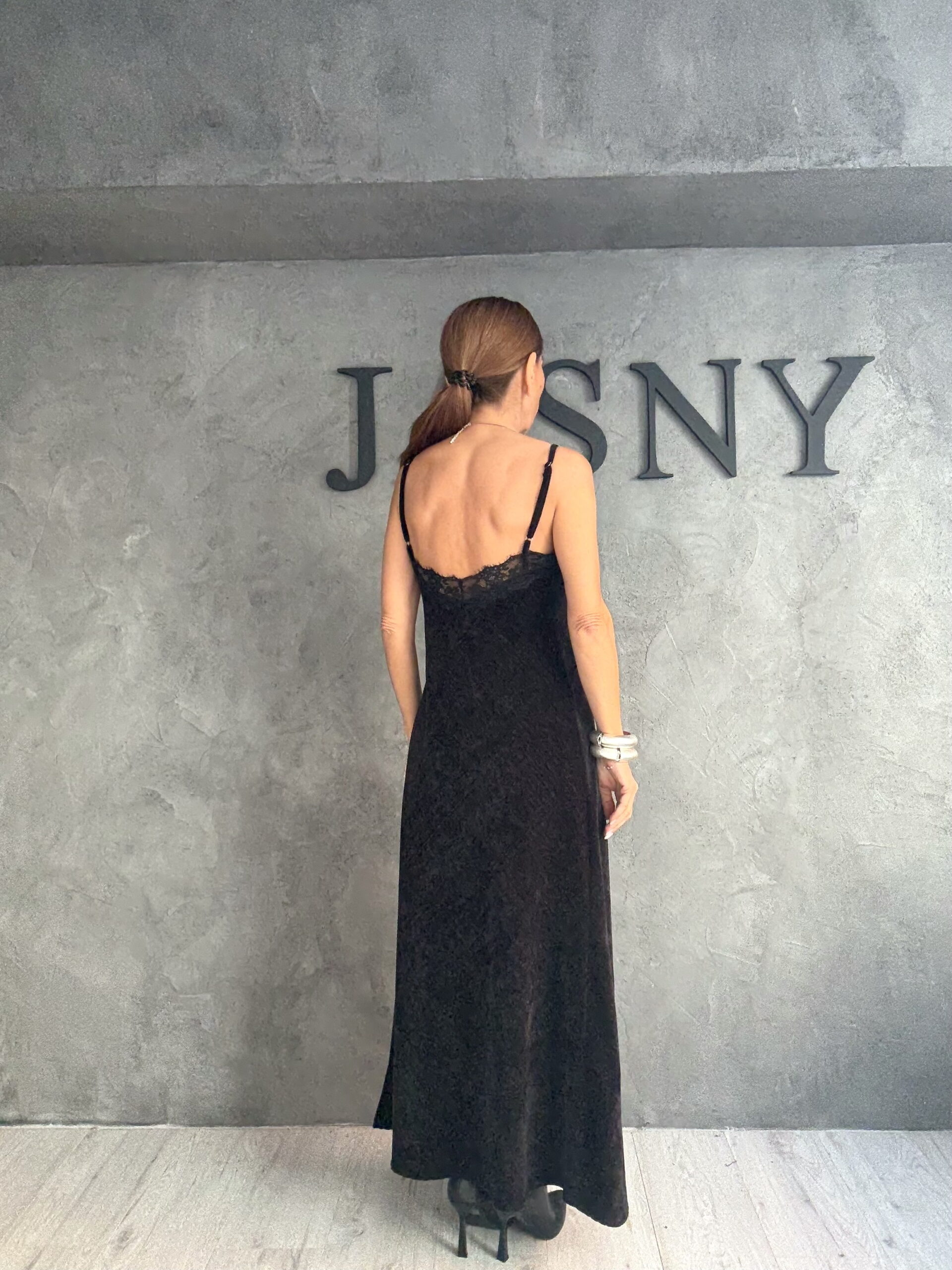 Μαύρο μακρύ φόρεμα χωρίς μανίκια, με καθαρή γραμμή και διακριτικές λεπτομέρειες που προσδίδουν σύγχρονη κομψότητα. Η λιτή του φόρμα αγκαλιάζει το σώμα με φυσικό τρόπο, δημιουργώντας ένα elegant αποτέλεσμα που δεν χρειάζεται υπερβολές.
