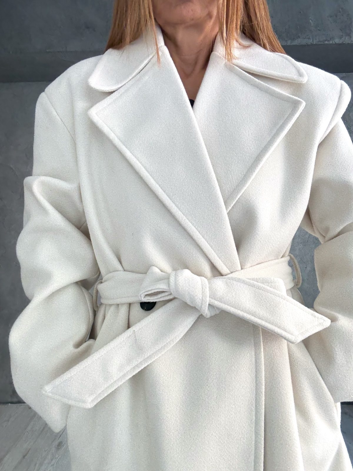 Μακρύ παλτό σε απόχρωση εκρού-σοφιστικέ, από πολυτελές μάλλινο ύφασμα που χαρίζει κομψότητα και διαχρονικότητα. Διαθέτει φαρδιά πέτα, ζώνη στη μέση και άψογη ραφή που αναδεικνύει τη θηλυκή σιλουέτα με minimal αισθητική. Ένα elegant must-have που προσφέρει καθαρότητα, φως και αριστοκρατικό χαρακτήρα σε κάθε εμφάνιση.