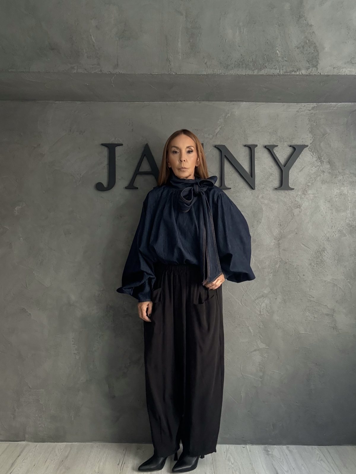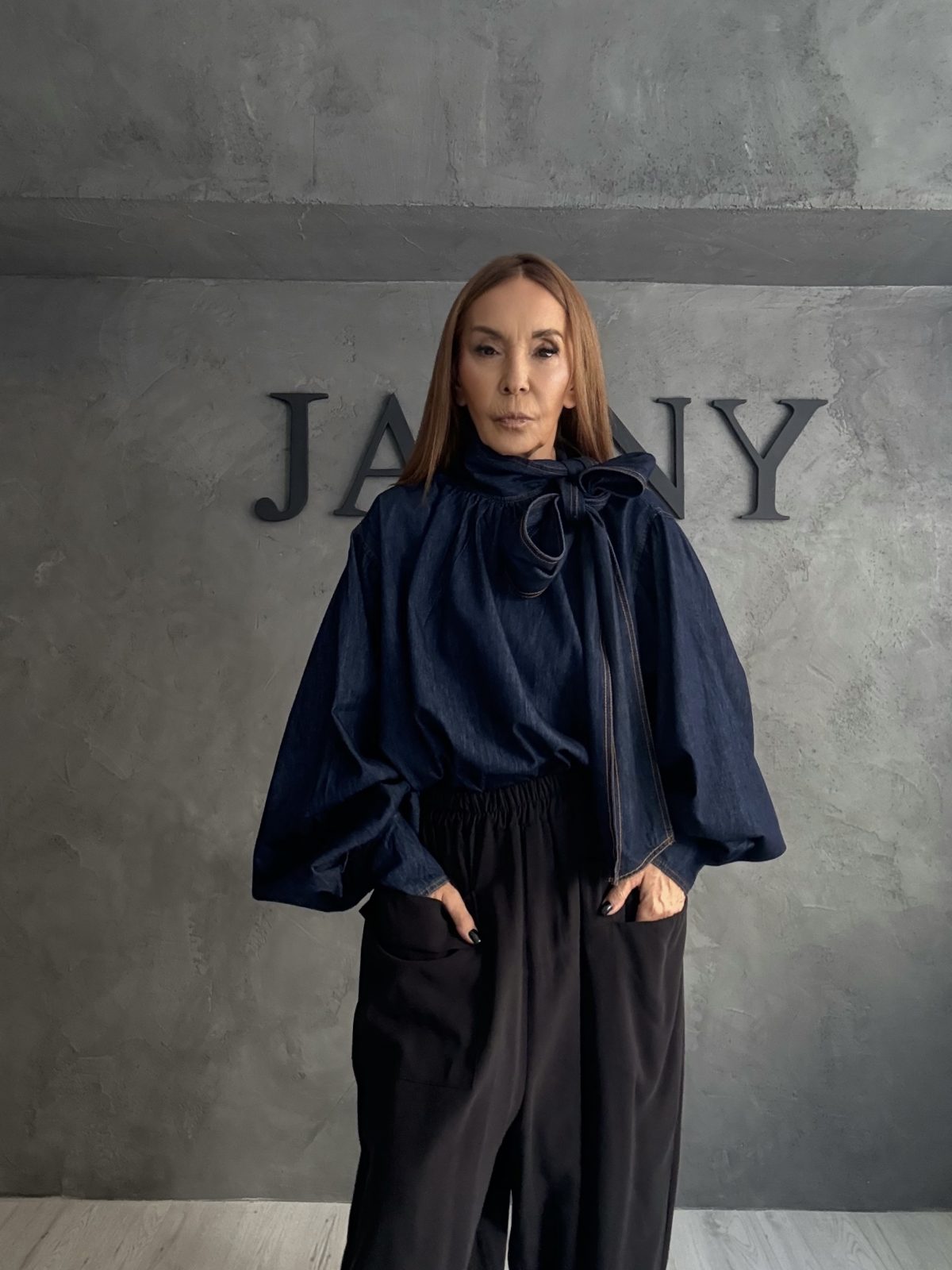Για chic look: Συνδύασέ το με το denim πουκάμισο με φιόγκο (όπως στη φωτογραφία) και mules/γόβες.