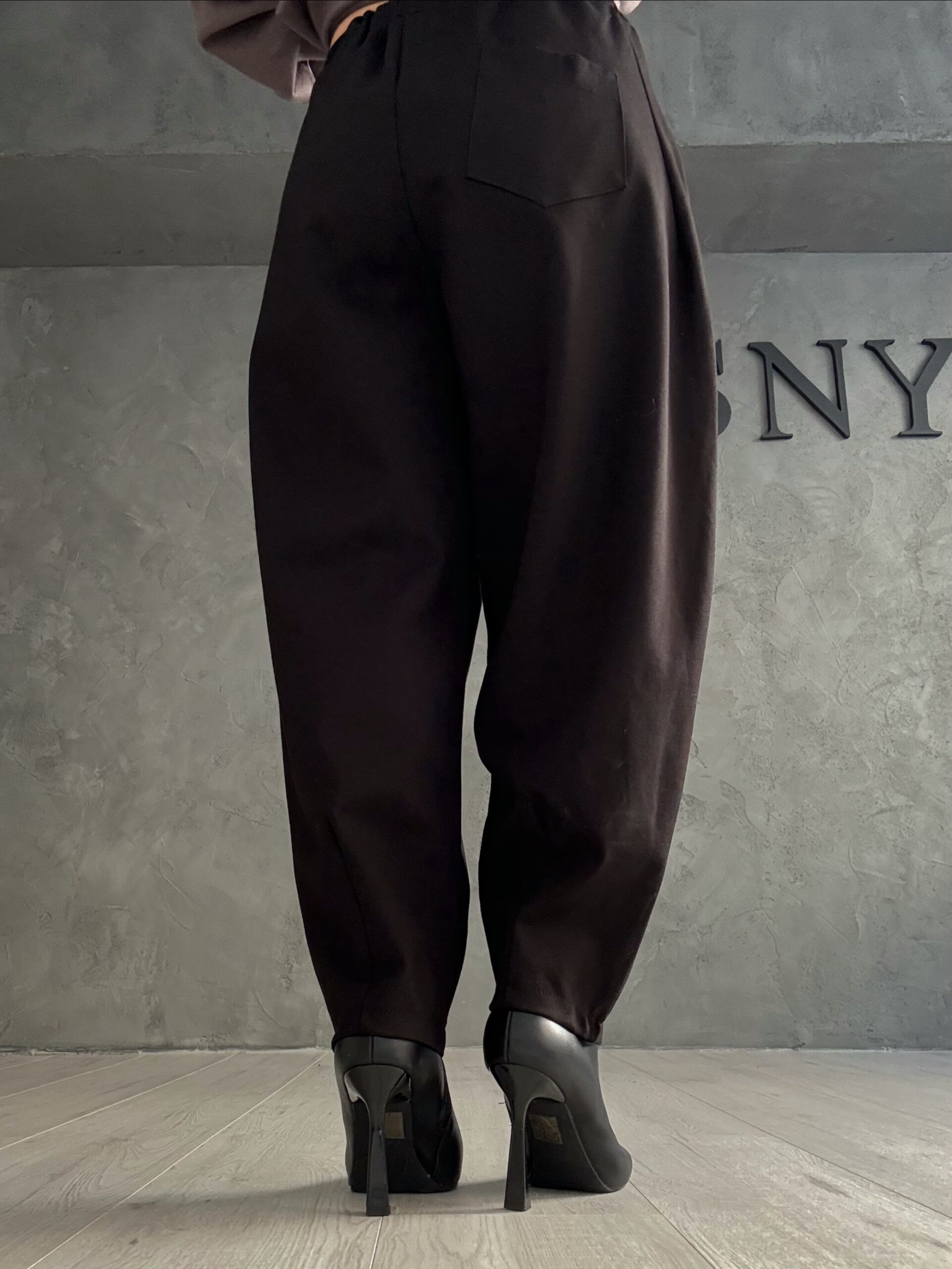 Minimal μαύρο παντελόνι με χαλαρή, ελαφρώς κωνική γραμμή που χαρίζει άνεση και κομψότητα. Η καθαρή του γραμμή το καθιστά ιδανικό για σύγχρονα urban looks αλλά και για πιο επίσημες εμφανίσεις. Το ύφασμα στέκεται σωστά χωρίς να χάνει την κίνηση, αναδεικνύοντας μια εκλεπτυσμένη σιλουέτα.