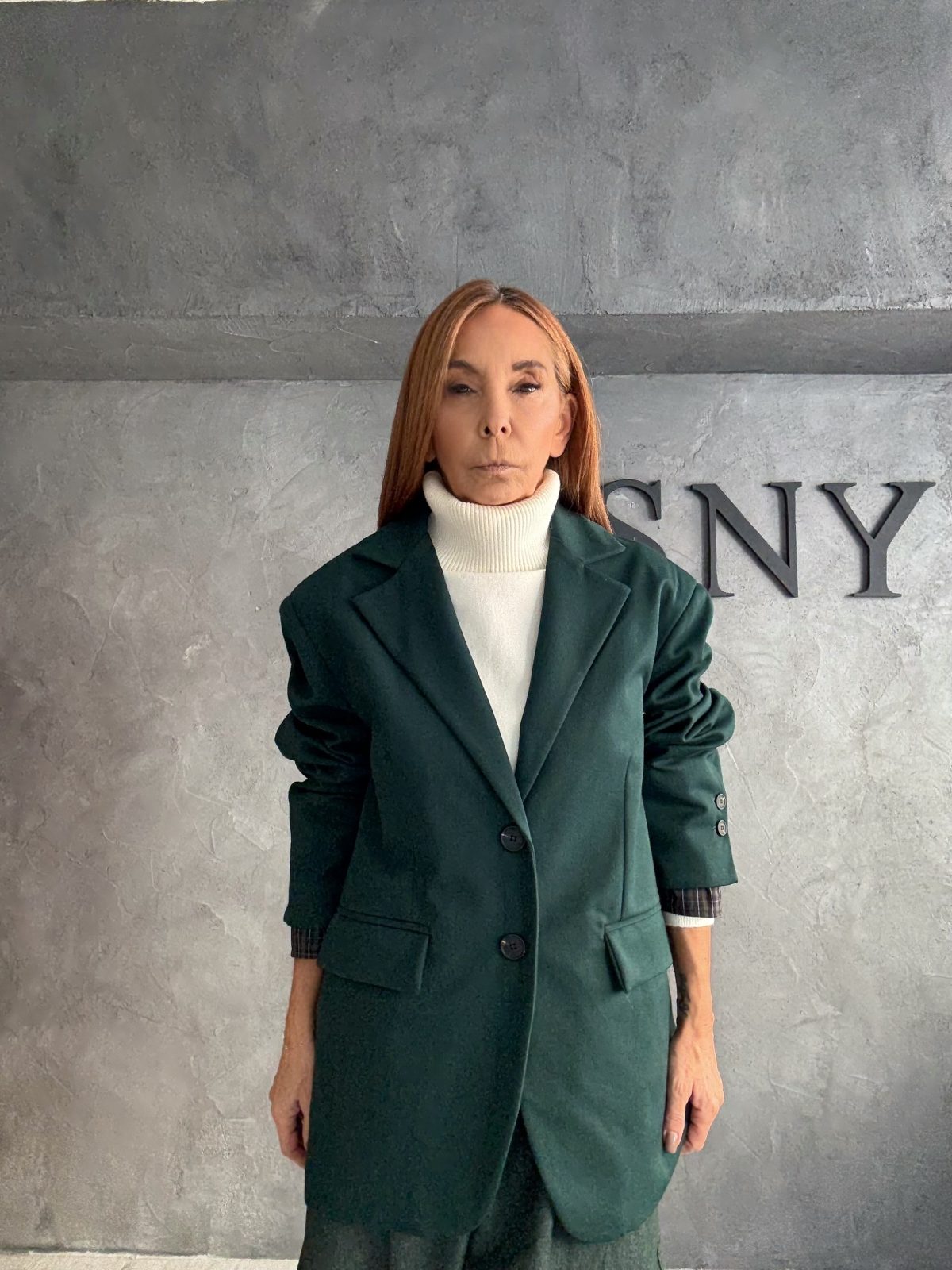 Ένα δυναμικό oversized σακάκι σε βαθιά σμαραγδί απόχρωση που αποπνέει κομψότητα και σύγχρονο χαρακτήρα. Η minimal γραμμή του προσφέρει άνεση, ενώ η ελαφρώς ανδρική αισθητική του χαρίζει fashion-forward αποτέλεσμα. Κλείνει με δύο κουμπιά και διαθέτει flap τσέπες, καθιστώντας το ιδανικό κομμάτι για layered looks, από casual έως πιο επίσημες εμφανίσεις.
