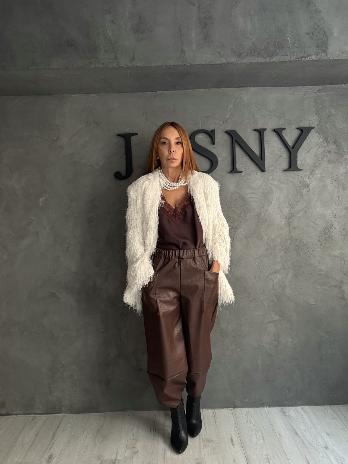 Το σακάκι είναι ένα εντυπωσιακό statement σακάκι με υφή τύπου shaggy/faux mohair που προσθέτει όγκο και πολυτελή κίνηση σε κάθε εμφάνιση. Σε απόχρωση ζεστού ivory, αγκαλιάζει απαλά τη σιλουέτα χωρίς να βαραίνει, χάρη στη χαλαρή γραμμή του. Φοριέται εύκολα τόσο ανοιχτό όσο και κλειστό, ενώ διαθέτει απαλό εσωτερικό lining για άνεση. Ιδανικό για βραδινές ή κομψές casual εμφανίσεις με fashion attitude.