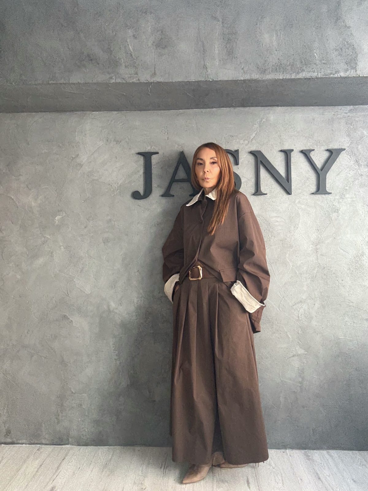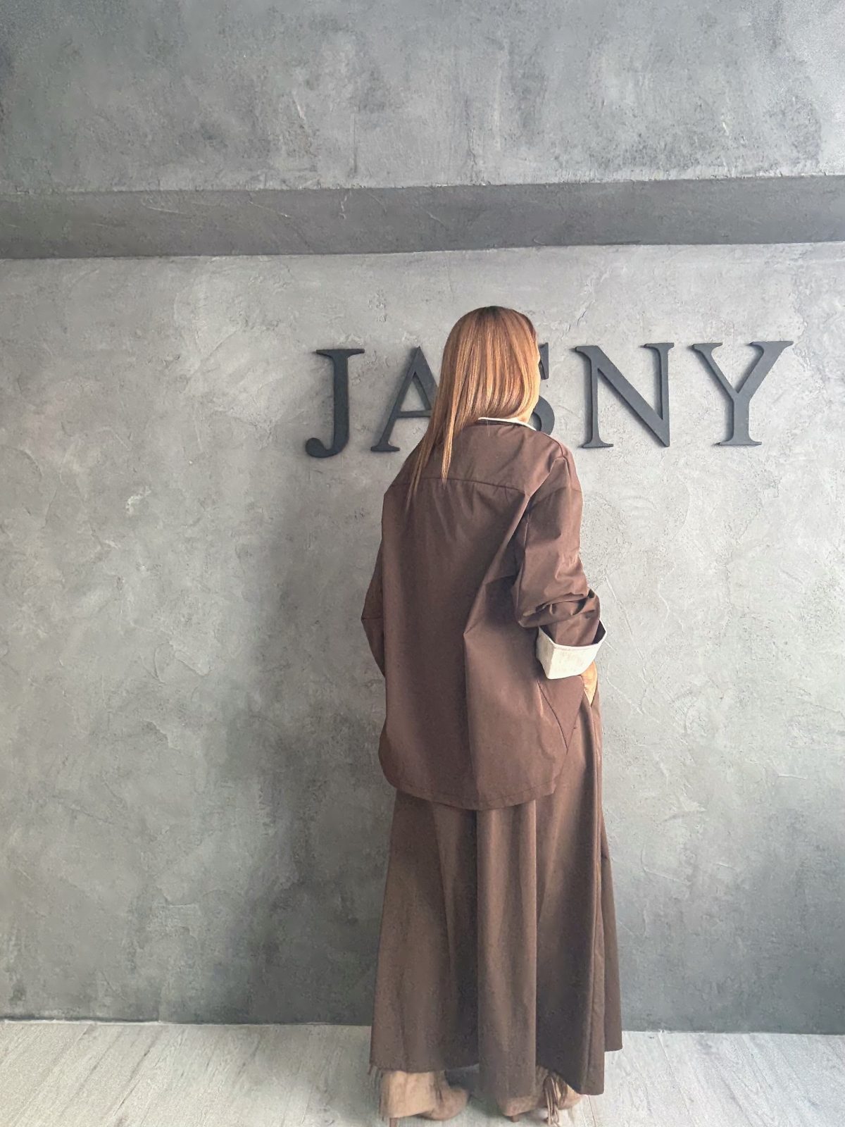 Minimal oversized σακάκι σε πλούσιο καφέ τόνο, με χαλαρή γραμμή και μακριά μανίκια που αποκαλύπτουν αντίθεση εκρού φόδρας στις μανσέτες. Διαθέτει μεγάλα κουμπιά και utility τσέπες, συνδυάζοντας την άνεση με τη δομημένη κομψότητα. Η ανδρόγυνη αισθητική του το καθιστά ένα διαχρονικό κομμάτι για all-day εμφανίσεις.