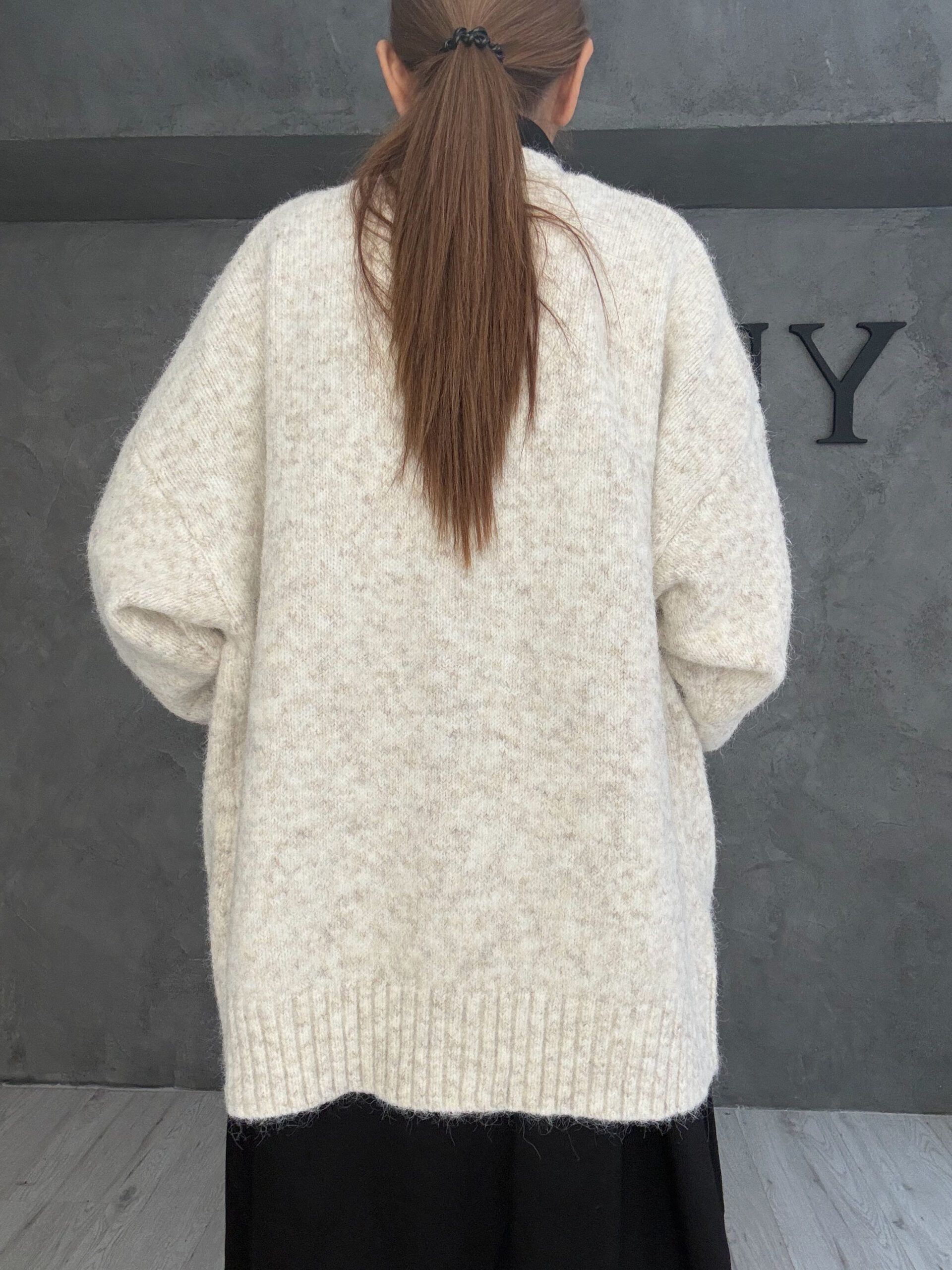 Oversized πλεκτή ζακέτα σε απαλή, φυσική απόχρωση, σχεδιασμένη για άνεση και καθημερινή κομψότητα. Η χαλαρή της γραμμή, σε συνδυασμό με τη V λαιμόκοψη και τα κουμπιά, δημιουργεί ένα διαχρονικό κομμάτι που φοριέται εύκολα από το πρωί έως το βράδυ.