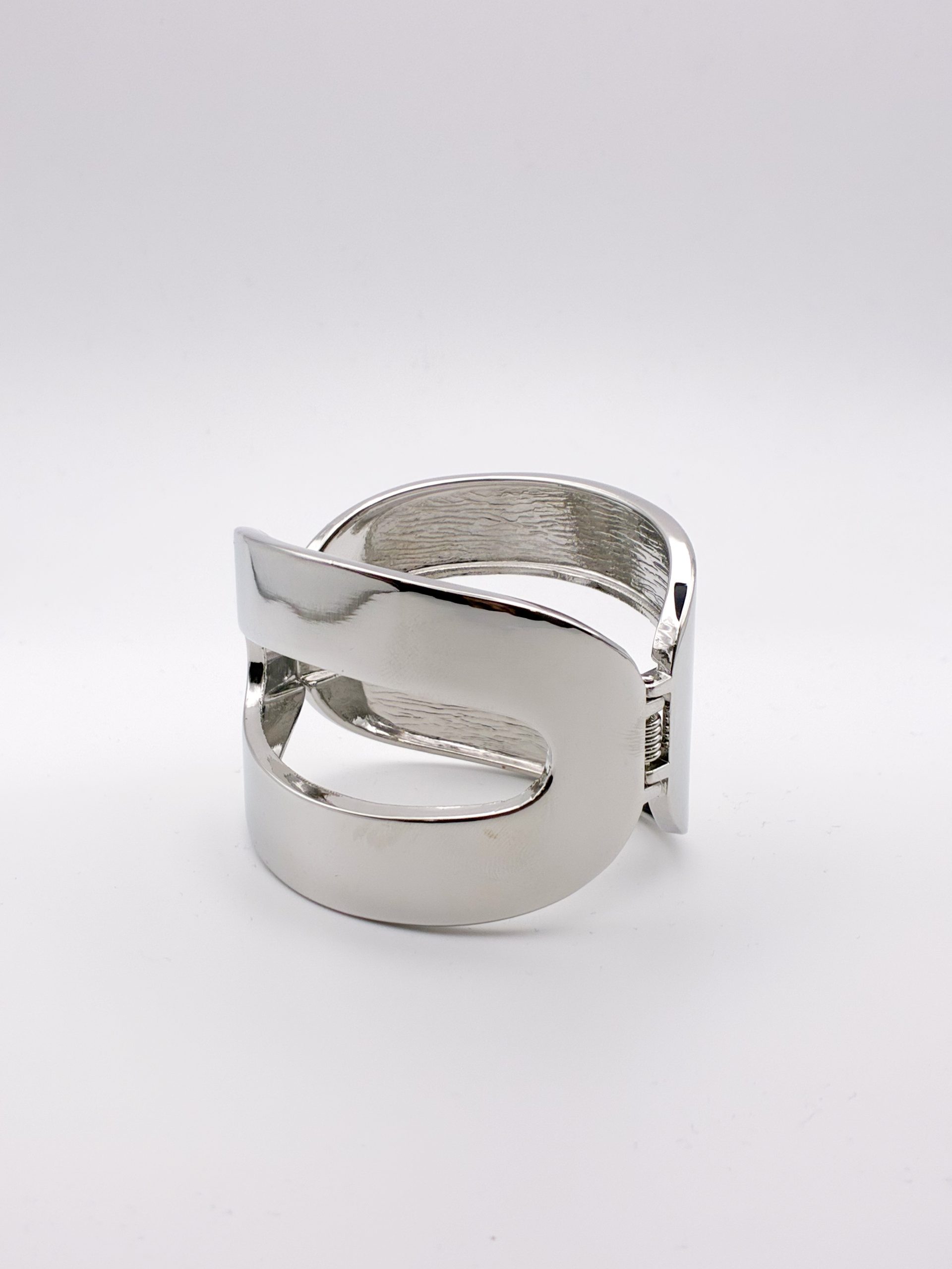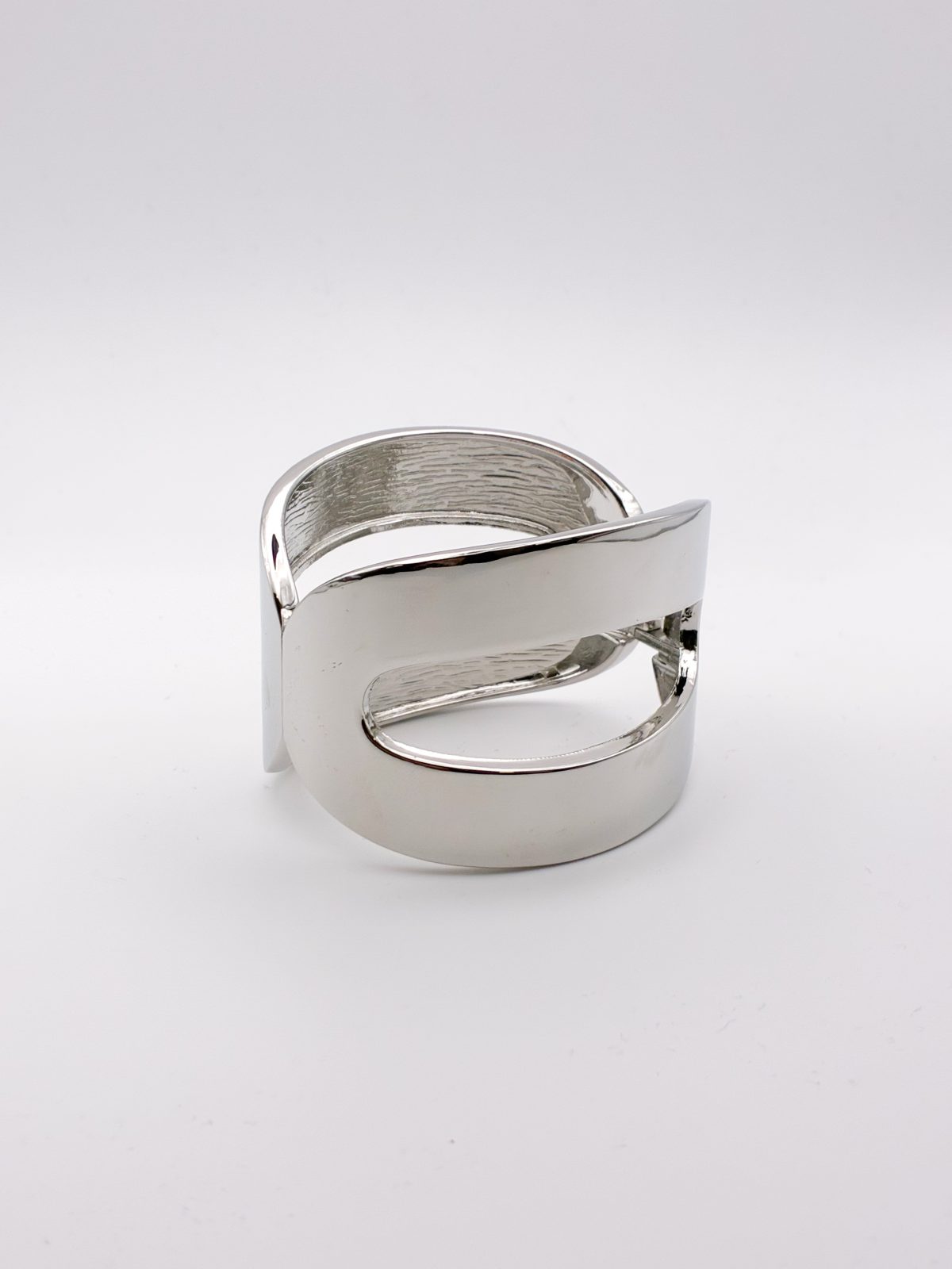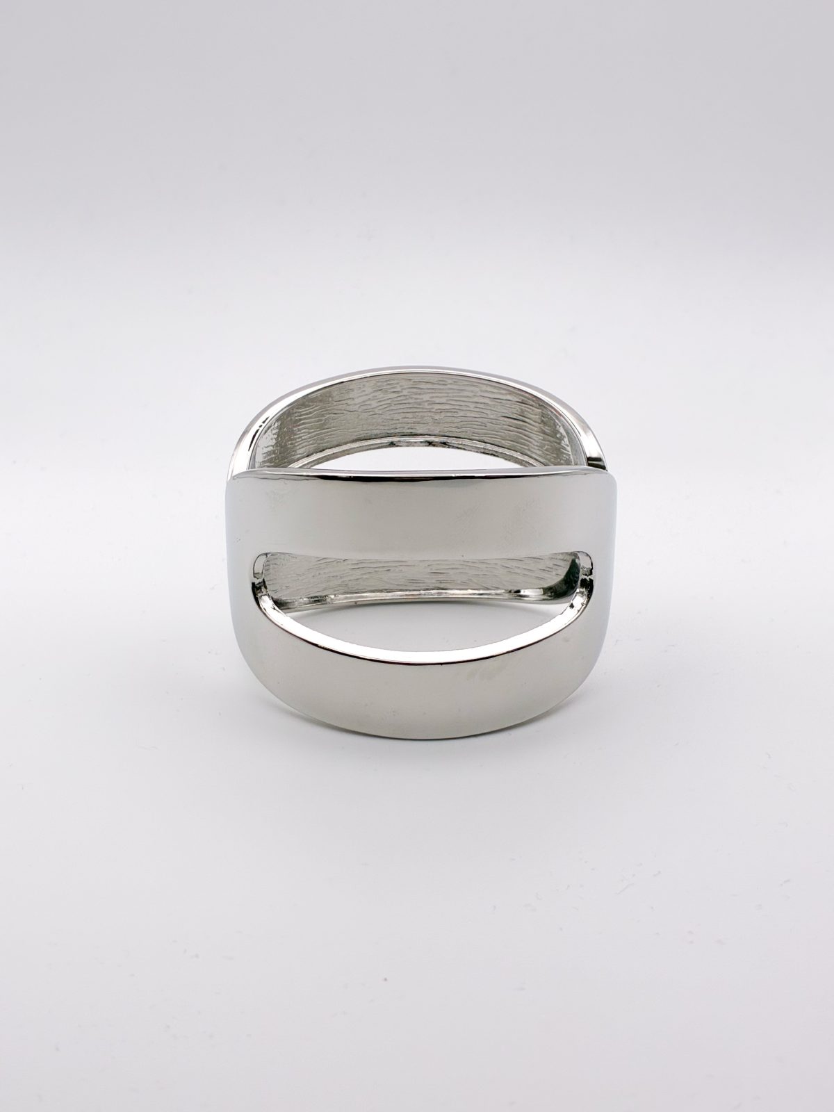 Minimal και μοντέρνο βραχιόλι-χειροπέδα σε ασημί απόχρωση με ιδιαίτερο γεωμετρικό cut-out σχέδιο. Ο καθαρός σχεδιασμός του αναδεικνύει την αρχιτεκτονική γραμμή του κοσμήματος, κάνοντάς το ιδανικό για όσες αγαπούν το contemporary στυλ και τα διαχρονικά μεταλλικά αξεσουάρ.