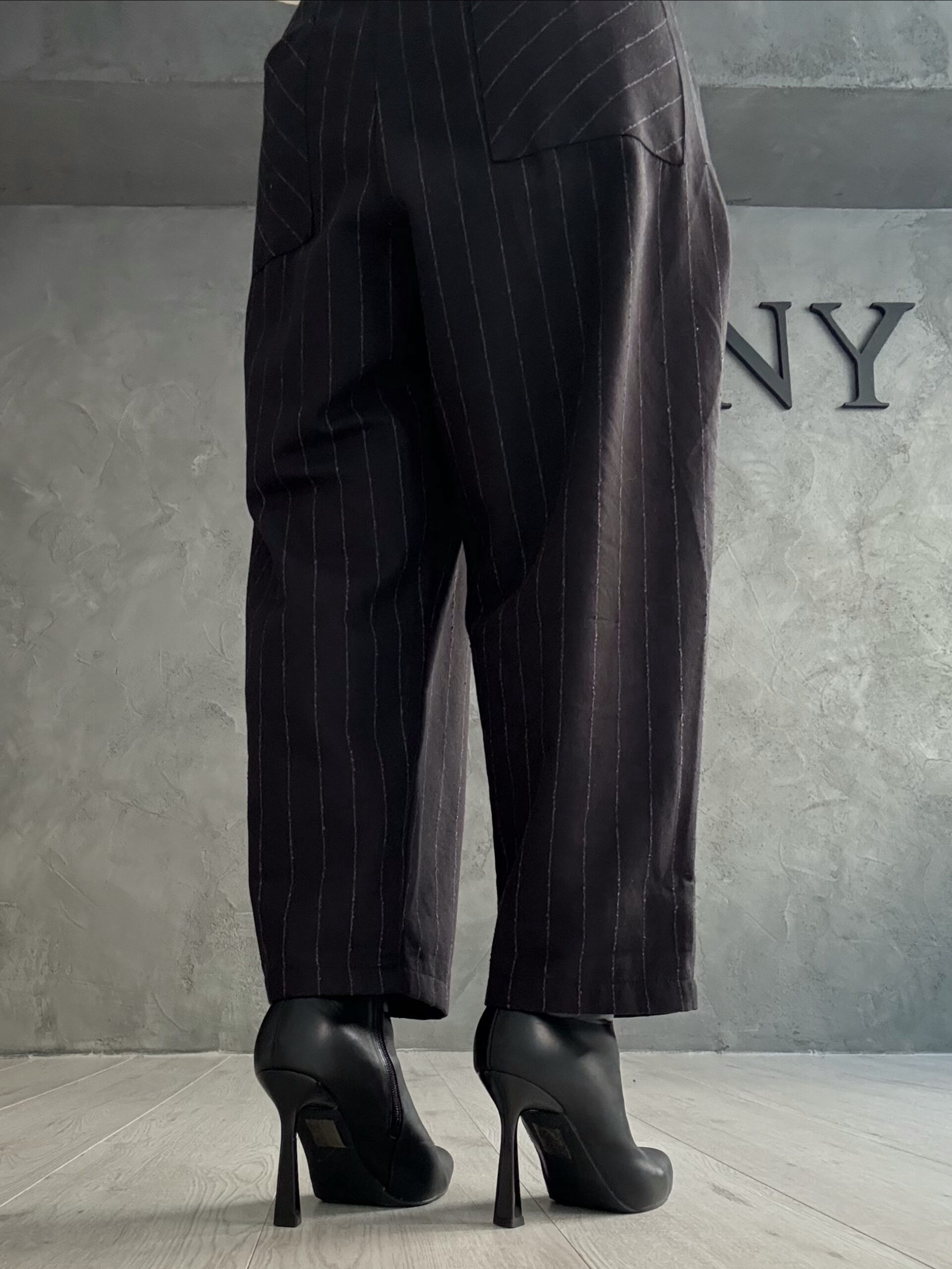 Η διακριτική ρίγα λειτουργεί οπτικά επιμηκυντικά, προσθέτοντας ύψος και κομψότητα, ενώ το ύφασμα διατηρεί τη δομή του χωρίς να γίνεται άκαμπτο. Το τελείωμα είναι καθαρό και λιτό, ενισχύοντας τον minimal σχεδιασμό και επιτρέποντας στο κομμάτι να συνδυαστεί εύκολα τόσο με casual όσο και με πιο αυστηρά looks.